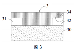 【實施方式】 [0010] 請參閱圖 3,本發明第一實施例之氣體感測器(3),其包括:一基板(30);形成於基 板(30)表面之二電極(31,32);一覆蓋基板(30)及二電極(31,32)之多孔隙氣體感測 薄膜(34),該薄膜為柱狀或管狀具有高密度排列之多孔隙的氧化鋅膜。 [0011] 製備步驟如下:提供一基板(30),其可為一薄板或膜層。其通常由絕緣性能好的材 料製成,如氧化鋁、石英、陶瓷或氮化矽等。另,氣體感測器(3)一般需要加熱到 一定溫度才能進行良好檢測,故基板(30)之材料又以同時具備良好之熱導性為佳。 [0012] 基板(30)表面形成電極(31,32)。電極(31,32)可由鉑(Pt)、金(Au)或其合金等材料 通過沈積法或濺鍍法按預定圖案形成於基板(30)表面,所形成之電極膜層以厚膜為 佳,其厚度可為 400~7000 奈米。 [0013] 用化學氣相沈積法製備氣體感測薄膜。把製備完成之表面沈積有二電極(31,32)之 基板(30)放入氣相反應爐之鋁舟中。使氧化鋅粉於高溫下發生熱還原反應,生成鋅 蒸氣,鋅蒸氣與基板及兩電極相接觸生長成具有孔隙之氧化鋅,該生長過程一般在 20 分鐘內發生。生成之柱狀或管狀具有高密度排列之多孔隙的氧化鋅佈於兩電極 及基板。 [0014] 本發明還可利用其他鍍膜技術生長氣體感測薄膜,同樣能達到本發明之技術效果。 本發明之氣體感測器由於氣體感測薄膜為柱狀或管狀結構,使孔隙結構得以保留, 故使氣體之流通量增加,氧化鋅氣體感測器之靈敏度大大提高。