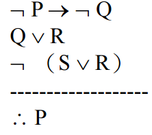 假如上述的論述為有效(valid),請證明之;反之,若為無效(invalid)論述,則 請舉出特定的 P、Q、R 與 S 為真(true),但卻使得論述的結論(conclusion)為假 (false)。(15 分)