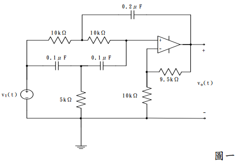 【已刪除】一、如圖一,求二階帶拒濾波器之中心頻率與頻帶寬。(20 分)