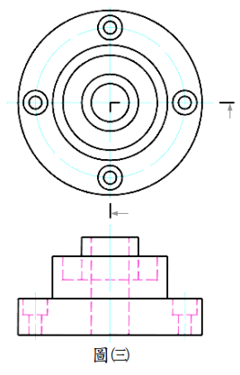 【已刪除】四、請繪製圖⑶之半剖視圖(不須標註尺寸,以比例 1:1 繪製)。(25 分)