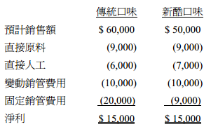6 甲食品公司欲從以下二產品方案中擇一銷售: