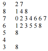 【已刪除】二、生產一批貨品其重量(單位為 0.1 公斤)如下莖葉圖(stem-and-leaf display)所示: