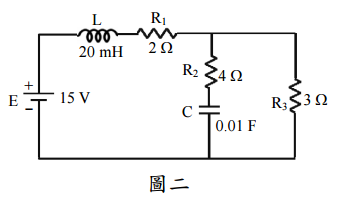 【已刪除】三、圖二為處於穩定狀態下的電路,求電感器 L 所儲存之能量。(10 分)