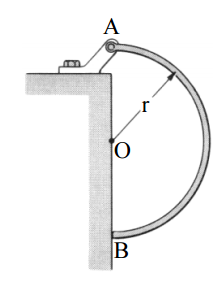 【已刪除】二、AB 為一重 W 之均勻半圓棒,A 端為鉸支承,B 端為光滑無摩擦平面,請計算 A 端 與 B 端之反力。(25 分)