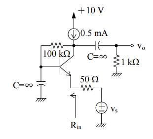 【已刪除】二、如圖所示為一共基極放大器電路。電路中熱電壓 V