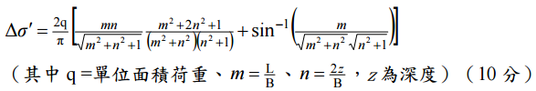【已刪除】⑴請利用矩形基礎下中心點垂直應力增量公式