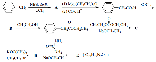 【已刪除】三、試以化學構造式寫出下列各合成步驟的產物 A 至 E。(10 分)