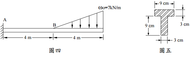 【已刪除】四、圖四所示之懸臂梁的斷面呈 T 形,如圖五所示,則在圖四所示的 B 點處所產生的最 大拉應力為多少?(20 分)