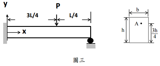 m 處)斷面上 A 點(參看圖三)之最大剪應力與主應力。(20 分)