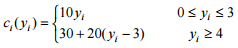 本週剩餘之存貨為一個,即第一週之初始存貨為 1 個,除每次之生產整備成本外, 每週生產 yi 個,i=1, 2, 3 之邊際生產成本為:
