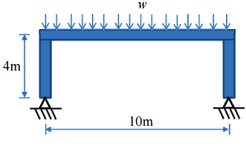 【已刪除】五、某平面框架如圖 5 所示,其兩柱底部均為鉸接,只有梁上承受均布載重 w。試示意 繪出此框架上梁柱的剪力圖及彎矩圖(無須計算),彎矩圖繪於張力側。(10 分)