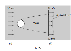 【已刪除】二、如圖二為一流經 10 公尺長圓柱下游的速度分佈,請求出空氣在圓柱上的作用力。 (25 分)