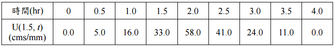【已刪除】三、已知某集水區 1.5 小時單位歷線 U(1.5, t)如下: