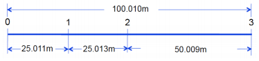 【已刪除】一、設點 0, 1, 2, 3 之平面位置分布在一直線上,今以某電子測距儀觀測得四段水平距離, 所得數據如下圖。若此電子測距儀之精度規格為 2mm±2ppm,請問這些觀測數據是 否合乎此儀器精度規格的表現?無論是否請說明其理由。(15 分)