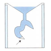 46 如下圖所示,考慮包埋材料須承受熔融金屬的衝擊力量及材料成本,蠟型的一端應離金屬環開 口約多少毫米(mm)較為合適?