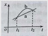 19,如图,直线a和曲线b分别是在平直公路上形式的汽车a和b的位置一时间(x-t)图线,由图可知 (A)在时刻t1,a车追上b车 (B)在时刻t2,a、b两车引动方向相反 (C)在t1到t2这段时间内,b车的速率先减少后增加 (D)在t1到t2这段时间内,b车的速率一直不a车大