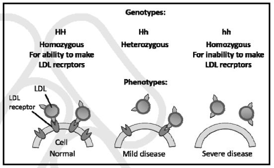 16、 ( ) 根據下圖,圖中當 H 基因型為異型合子時,高膽固醇血症者會發病,原因為下列何者?