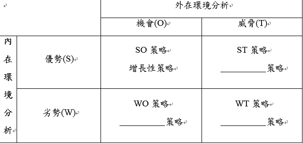 【已刪除】5. 請完成以下SWOT矩陣策略表。