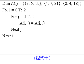 【已刪除】14. (程式十)執行後,A(2, 0)的值為何?________