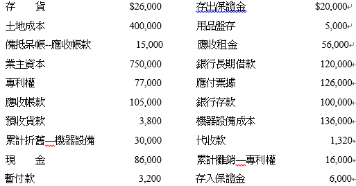 【已刪除】2.和平商店01年底調整後實帳戶之餘額如下:試編製資產負債表(本期損益單獨列示)。(表首、@橫行1分,共21分,扣完為止!)