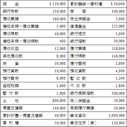 【已刪除】2.根據下列大利商店102年底結帳後的會計科目餘額(本期損益已結轉業主往來),編製資產負債表。