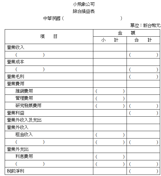 【已刪除】1.下列為小飛象公司101年度的損益資料。單位:新台幣元 請編製綜合損益表。
