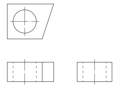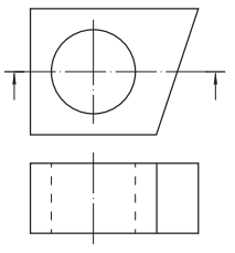 【已刪除】2. 請依割面線所示,以實際尺寸繪製完整之正投影全剖視圖(30%)與等角全剖試圖(30%), 並於視圖下方以工程字書寫視圖種類(5%)。