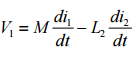 4.如右圖所示為一耦合電感器,有關線圈中的電壓-電流關 係式何者正確? (A)
