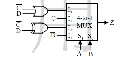 20.如下圖所示之電路,試問其所實現之布林函數Z(A, B, C, D)為何? (A) ∑(0, 1, 3, 6, 7, 8, 11, 12, 14) (B) ∑(0, 1, 2, 4, 5, 9, 10, 12, 15) (C) ∑(2, 3, 4, 6, 7, 9, 10, 13, 15) (D) ∑(2, 3, 5, 6, 8, 11, 12, 14, 15)。