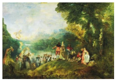 34. 右圖《航向西提島》是哪一位洛可可畫家 的名作?