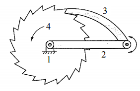 【已刪除】四、如圖之棘輪機構為間歇運動機構的一種,其各機件(1、2、3、4)名稱為何?(8 分) 何者為主動件、從動件?(4 分)並請說明圖中棘輪機構的工作原理。(8 分)