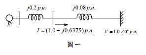 【已刪除】五、如圖一所示,有一部額定為 100 MVA 之同步發電機經由一條電抗為 0.08 p.u.之輸電線 供應 100 MW 實功至一無限匯流排(Infinite bus);發電機之暫態電抗為 0.2 p.u., 慣性常數(Inertial constant, H)為 4 p.u.(以 100 MVA 為基準)。以無限匯流排之 電壓為參考,發電機供應之電流為(1.0- j0.6375)p.u.,若有一個三相短路故障在 發電機輸出端發生,故障在 0.1 秒時清除。請列出必要之微分方程式,並利用改良 的尤拉法(Modified Euler’s method)計算至 0.04 秒時的發電機轉矩角及轉速大小, 請以 0.02 秒做為疊代計算之時間步階(Time step)進行計算。(20 分)