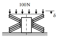 【已刪除】二、如圖所示之盤形彈簧(disk spring)組合,中間為一導桿,若其單一彈簧皆於線性變 形範圍內且每一彈簧常數皆為 10 N/mm,在圖中之堆疊排列狀況下,試求負載為 100 N 時,彈簧組之總變形量δ為多少?(20 分)