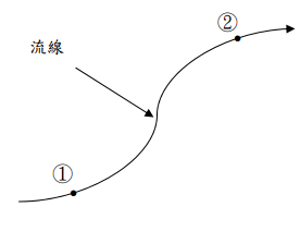 【已刪除】四、為探討流體分子沿流線的運動情形,TAM 研究所設計實驗如圖所示。設比重 (specific gravity)為 0.0015 之流體為無黏性、不可壓縮並穩定流動,一流體分子 沿著流線自點①向點②移動。已知,點②的壓力比點①大 30 Pa,且高度也高了 10 m。 經測量發現,流體分子在點②時,是靜止的,請問,該流體分子在點①時的速度 為何?(20 分)