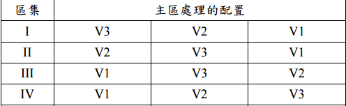 【已刪除】 ⑵試驗者的第一階段 RCBD 主區配置圖已經完成如下: