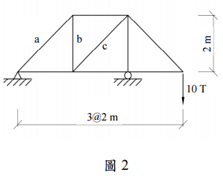 【已刪除】二、試解圖 2 桁架中,a、b、c 各桿件之力。(25 分)