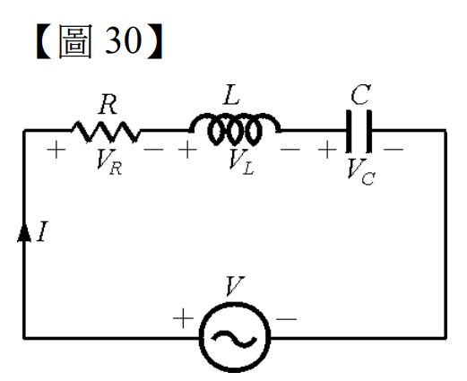 30.如【圖 30】所示,以交流電壓表測得:VR為 80 V,VL為 100 V,VC為 40 V,則電路之 P.F.=?(A) 0.8 (B) 0.6 (C) 0.75 (D) 0.866