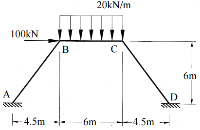 【已刪除】三、圖示之剛架(rigid frame),各桿 EI 相同,試求解各桿端彎矩,(18 分)並繪其彎 矩圖。(7 分)(本題可視為對稱及反對稱之合成)