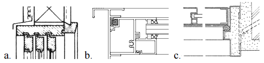 下列圖中有鋼製、木製、鋁製三種門窗詳圖。請問:a.為