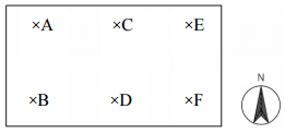 (二)同下測量圖,若 A=100,B=90,C=50,D=40,E=10,F=0,則基地周邊排水溝 應該設在基地東南西北那一側?(3 分)