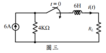 【已刪除】三、考慮圖三之電路,其中 i(0) = 0,且非線性電阻 RL 的電阻值與流過之電流 i 的關係如 下: