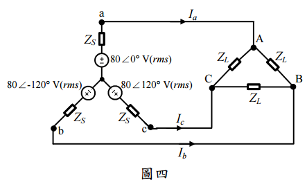 【已刪除】四、圖四為一平衡式三相電路,其中電源阻抗 Z