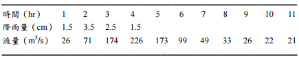 /s。根據下表之降雨及流量資料,試推求該集水區之單位歷線。 請注意在推求過程中,可能需要合理之研判及調整。(20 分)