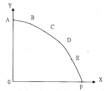 21 下圖是某經濟體生產 X 和 Y 的生產可能線。如果生產從 F 點移動到 E 點,對資源的移轉的敘述何者正確?