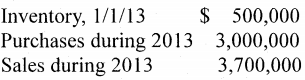 A physical inventory taken on December 31, 2013, resulted in an ending inventory of $525,000. Staples’s gross profit on cost has remained constant at 25% in recent years. Staples suspects some inventory may have been taken by a new employee. At December 31, 2013, what is the estimated cost of missing inventory? (A)$ 15,000 (B)$ 175,000 (C)$200,000 (D)$ 185,000.