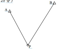 【已刪除】三、如圖示,A、B 點之坐標分別為:(490.000 m, 730.000 m)、(1280.000 m, 880.000 m), 於 P 點設置全測站儀,觀測得距離 PA=650.000 m、PB=860.000 m、∠APB=62°32'33", 試計算 P 點的坐標。(20 分)