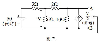 【已刪除】三、如圖三所示電路,其中電阻 6Ω 兩端電壓為 V