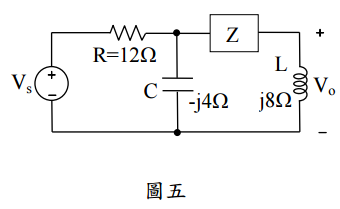 【已刪除】五、如圖五所示弦波穩態電路,其中