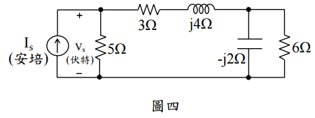 【已刪除】四、如圖四所示弦波穩態電路,其中