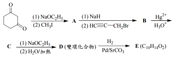 【已刪除】六、試完成下列多重步驟反應中的產物 A 至 E 的結構。(10 分)